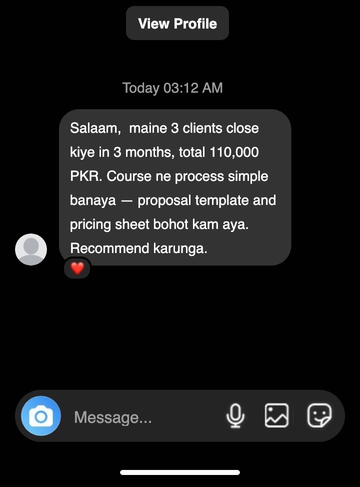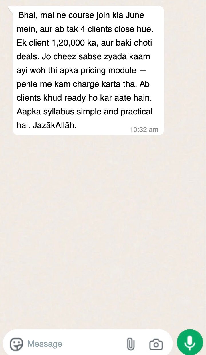 Perfect — this course teaches sales and client acquisition from scratch, even if you’ve never closed a deal before.