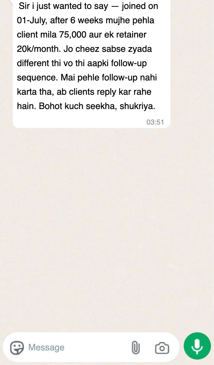Yes — but only if you apply the system consistently. The course gives you the exact roadmap that Saim used to build a 7-figure remote agency.